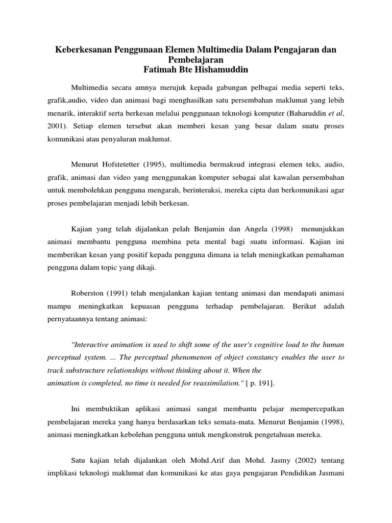 Keberkesanan Penggunaan Elemen Multimedia Dalam Pengajaran Dan Pembelajaran Pdf